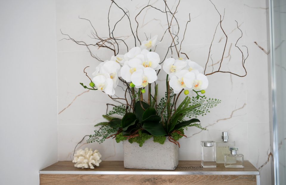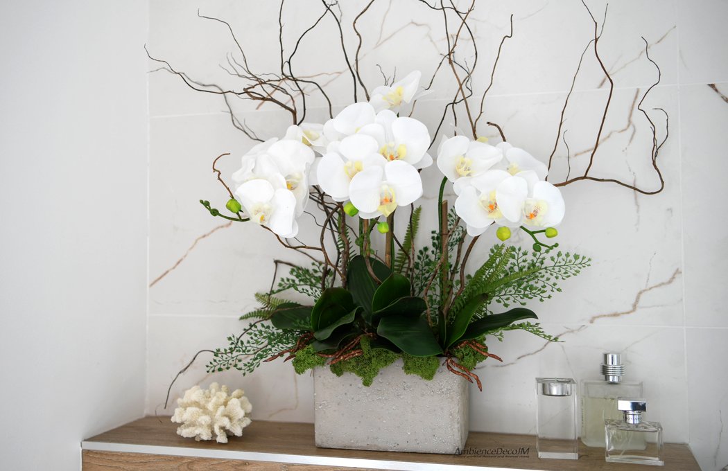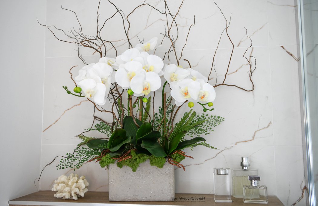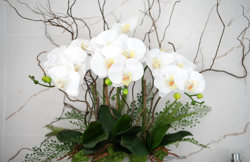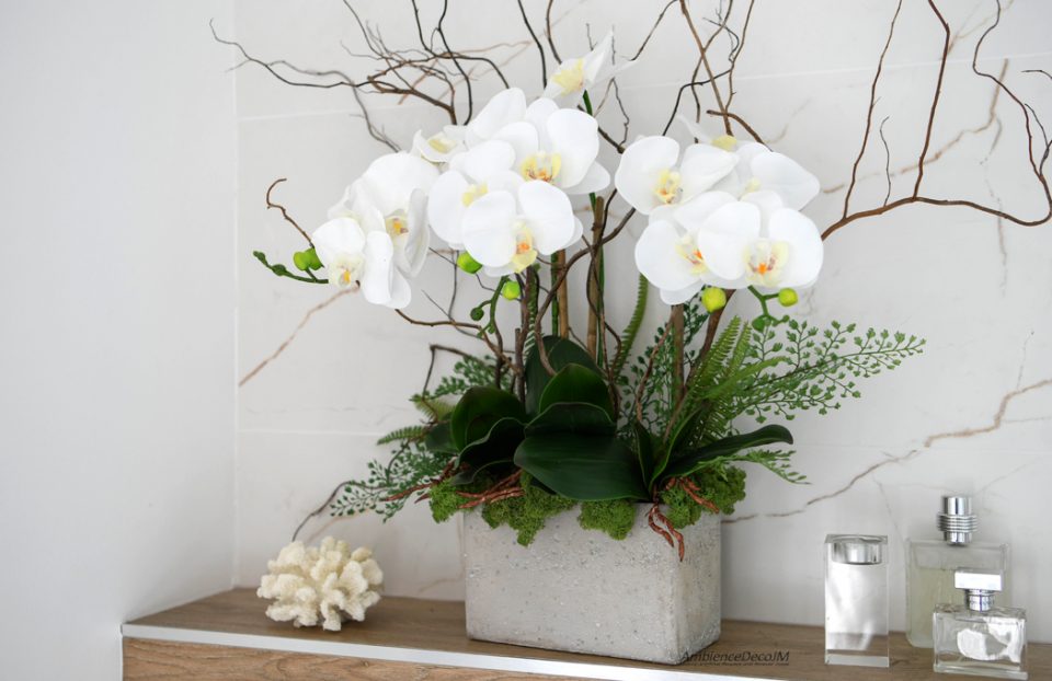 At AmbienceDecoJM, we offer a wide selection of rare and stunning orchid varieties in various colors and arrangements, all handcrafted to order.