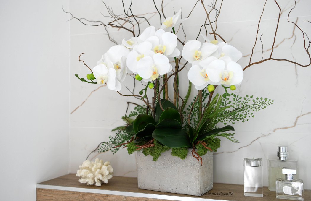 Realistic Orchids in a Concrete Vase | Elegant Artificial Orchid Arrangement