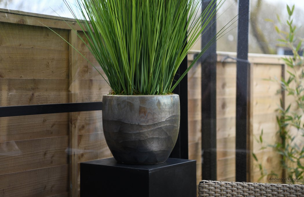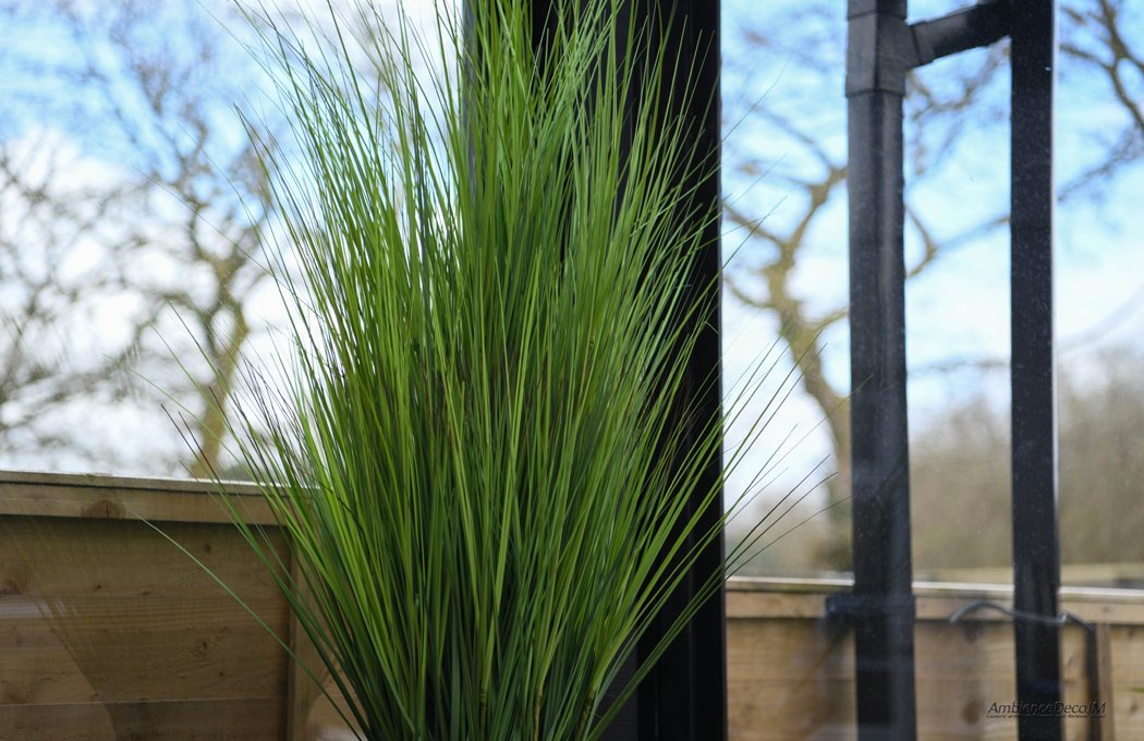 Crafted with realistic faux grass blades, this artificial grass arrangement mimics the movement and softness of natural ornamental grass, making it ideal for creating a calm, contemporary atmosphere. The premium designer pot adds a refined finish, perfectly suited to luxury homes, minimalist spaces, and architectural interiors.